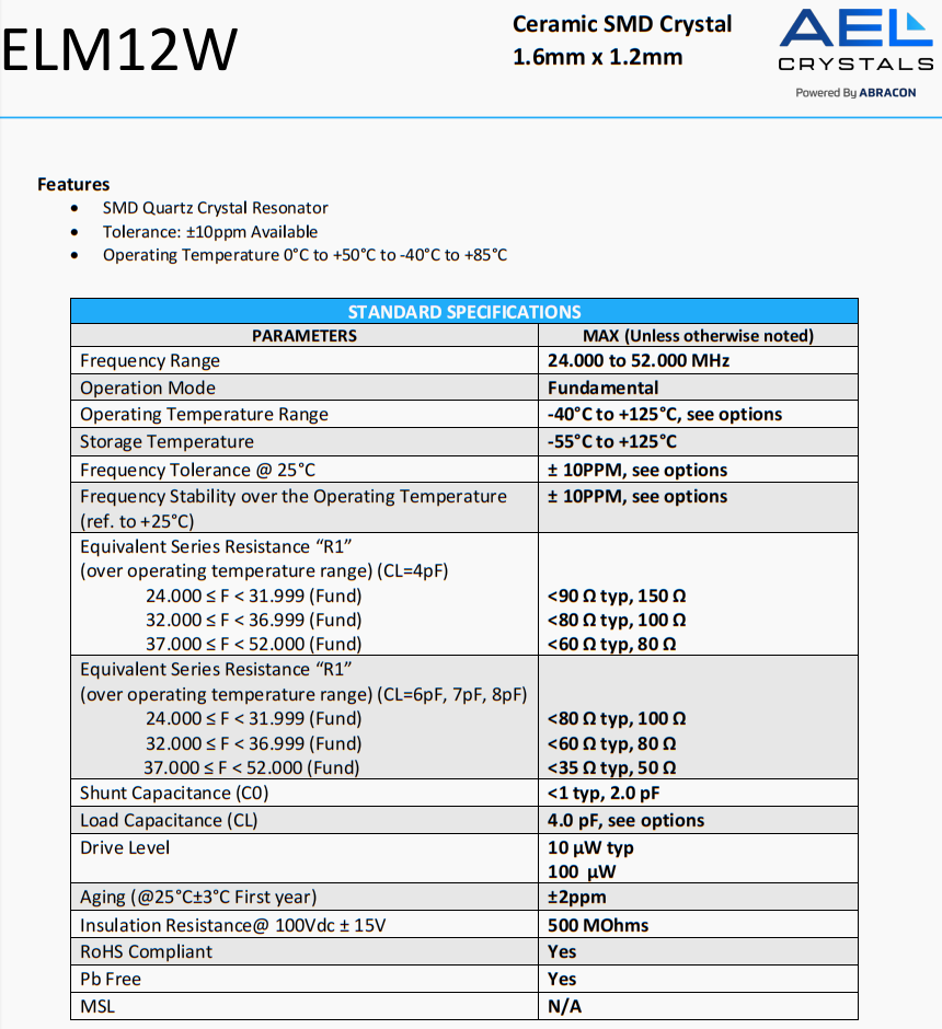 ELLS-12.000MHz-18-R60-A-4-F-T | AEL Crystals | ELLS | 12 MHz | ±50ppm | ±30ppm | 18 pF |