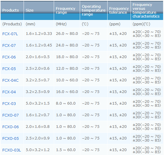 晶振參數(shù)表 | 石英晶體諧振器FCX-07L | |