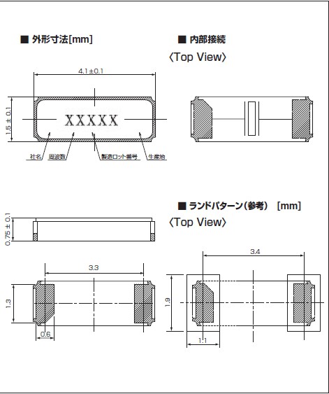 周波數許容偏差 | ± 20×10-6,± 30×10-6,± 50×10-6(at 25℃) | |