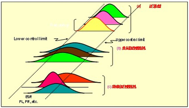 如果頻率不穩定,偏移的幅度上百ppm或同時伴有C0偏小現象,應考慮膠點是否松動.對于一條相對成熟的生產線來說,產品在常溫下的頻率穩定性一般不會出現問題,比較常見的是產品的一致性(散差),尤其是高頻的小公差產品一致性往往不如人意.一致性考慮是多個產品的頻率公差,在測試系統中,觀察FL的正態分布圖可以很直觀的了解產品的一致,也可以使用儀器測試系統中的CPK計算功能,通過CPK來衡量產品的一致性.
