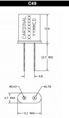 C49X-A3B1C1-40-8.0D16 | Cardinal晶振 | C49 | 8MHz | 16pF | ±100ppm | 40 Ohm | -55°C ~ 125°C |
