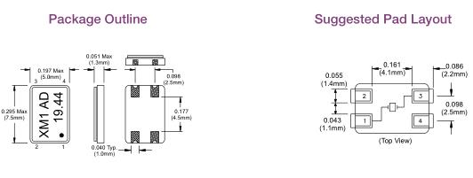XM-1-010.0M | Connor-Winfield | XM-1 | 10MHz | ±50ppm | ±50ppm | 16pF | 50 Ohm | -10°C ~ 60°C |