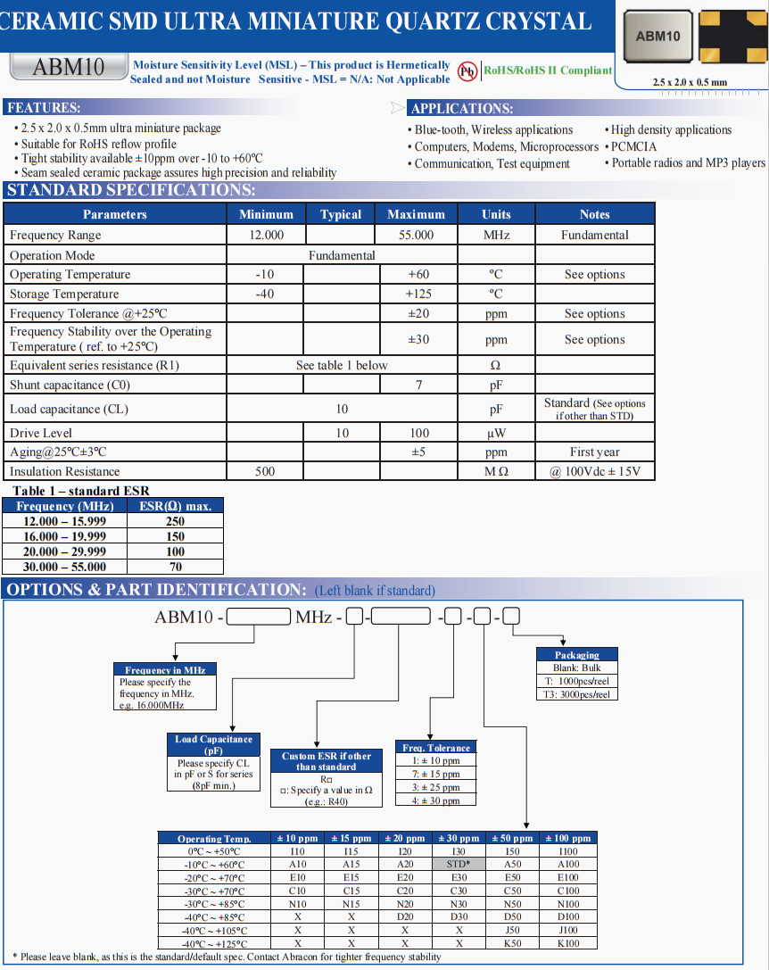 ABRACON晶振 | 單位 | ABM10晶振 | 石英晶振基本條件 |
