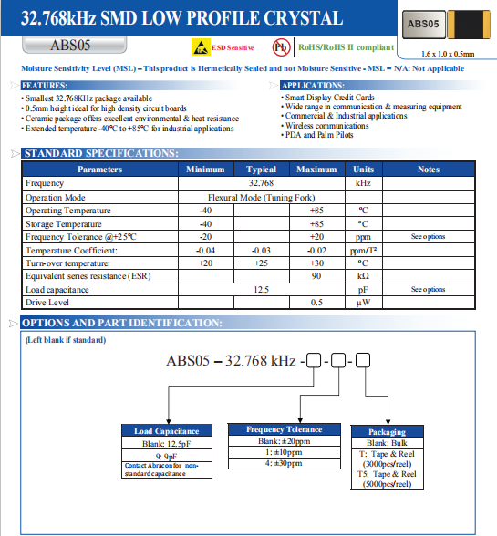 ABRACON晶振 | 單位 | ABS05晶振 | 石英晶振基本條件 |