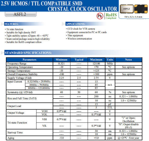 輸出頻率范圍 | fo | 0.321~125.000MHz |
