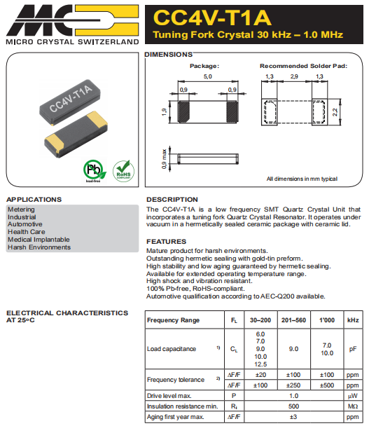 Microcrystal晶振 | 單位 | CC4V-T1A晶振 | 石英晶振基本條件 |