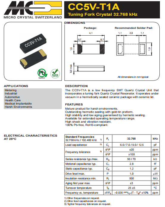 Microcrystal晶振 | 單位 | CC5V-T1A晶振 | 石英晶振基本條件 |
