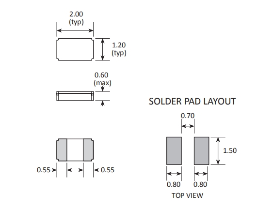 建議將輸出負載安裝在盡可能靠近石英振蕩器的地方(在20mm范圍之間).