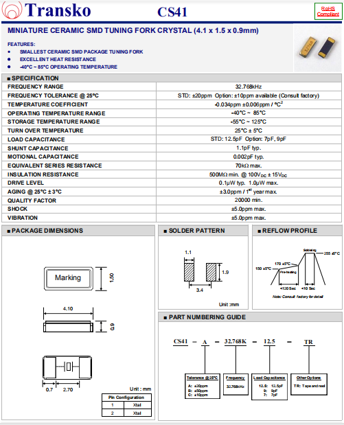 Transko晶振 | 單位 | CS41晶振 | 石英晶振基本條件 |
