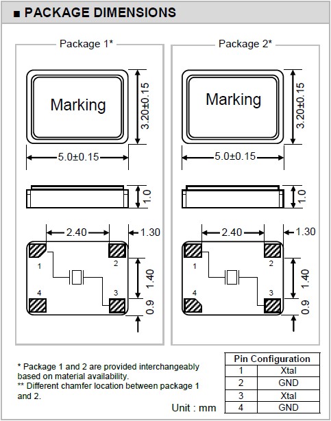 激勵功率 | DL | 1.0μW Max. | 推薦:100μW ~ 300μW |