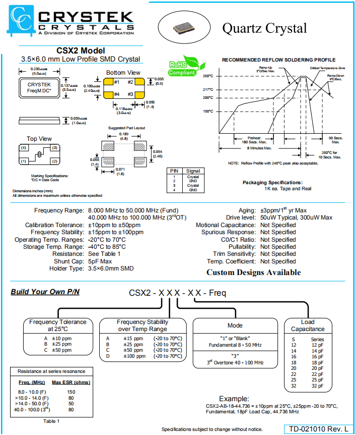 CRYSTEK晶振 | 單位 | CSX2晶振 | 石英晶振基本條件 |