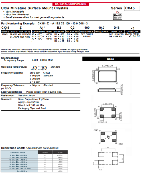 Cardinal晶振 | 單位 | CX45晶振 | 石英晶振基本條件 |