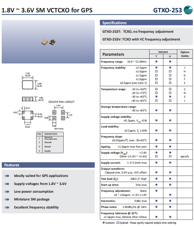 Golledge晶振,GTXO-253晶振,高質量晶振..貼片石英晶體,體積小,焊接可采用自動貼片系統,產品本身小型,表面貼片晶振,特別適用于有小型化要求的電子數碼產品市場領域,因產品小型,薄型優勢,耐環境特性,包括耐高溫,耐沖擊性等,在移動通信領域得到了廣泛的應用,晶振產品本身可發揮優良的電氣特性,滿足無鉛焊接的高溫回流溫度曲線要求.