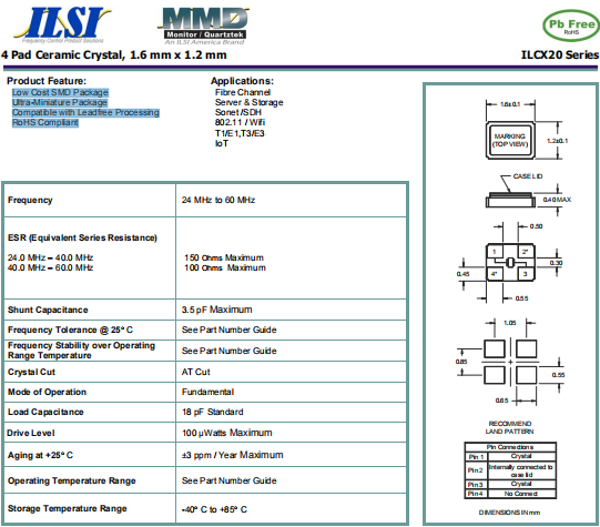 ILSI晶振 | 單位 | ILCX20晶振 | 石英晶振基本條件 |