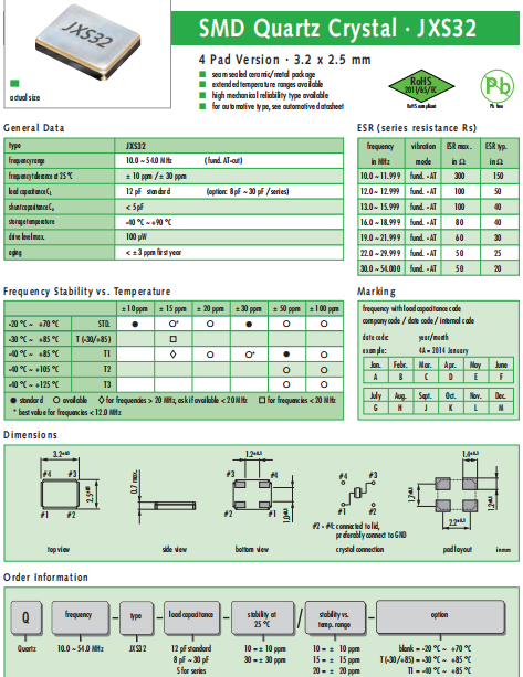JAUCH晶振 | 單位 | JXS32晶振 | 石英晶振基本條件 |