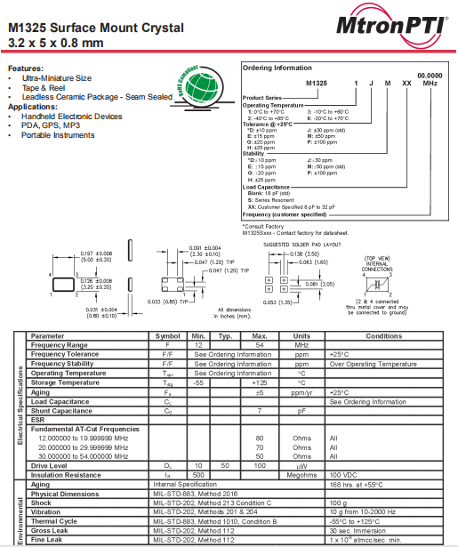MTRONPTI晶振 | 單位 | M1325晶振 | 石英晶振基本條件 |