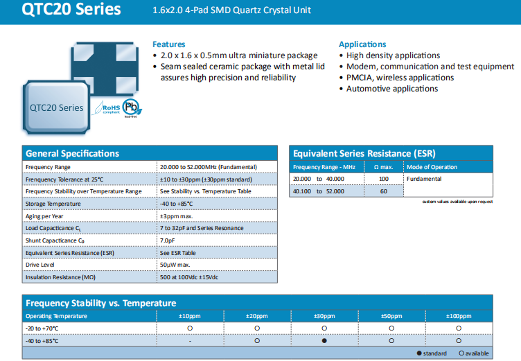 Quarztechnik晶振 | 單位 | QTC20晶振 | 石英晶振基本條件 |