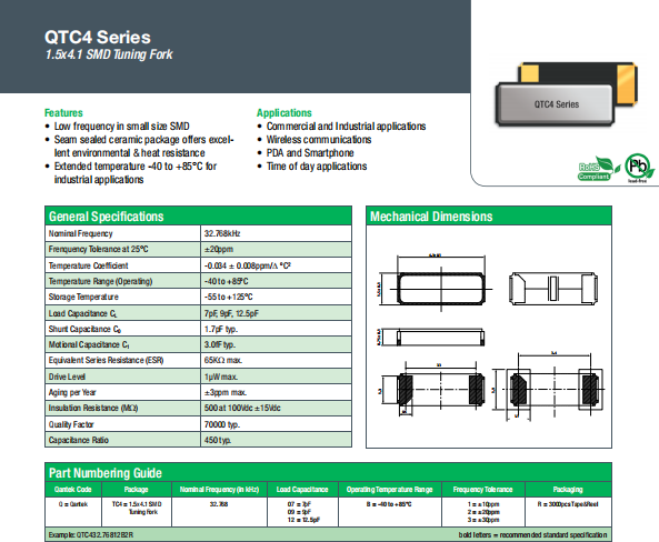 Qantek晶振 | 單位 | QTC4晶振 | 石英晶振基本條件 |