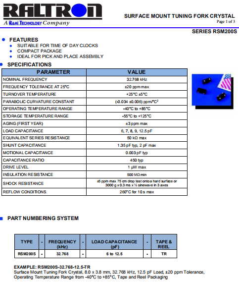 Raltron晶振 | 單位 | RSM200S晶振 | 石英晶振基本條件 |