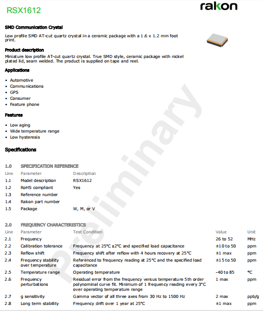 Rakon晶振 | 單位 | RSX1612晶振 | 石英晶振基本條件 |