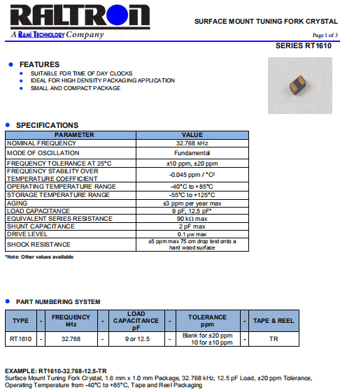 Raltron晶振 | 單位 | RT1610晶振 | 石英晶振基本條件 |