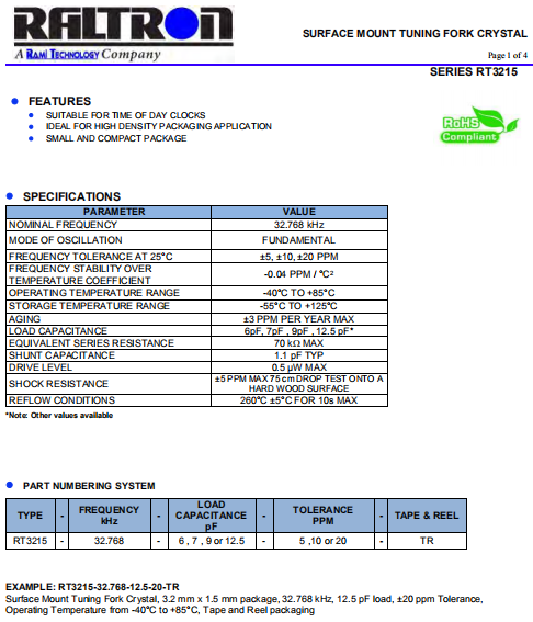 Raltron晶振 | 單位 | RT3215晶振 | 石英晶振基本條件 |
