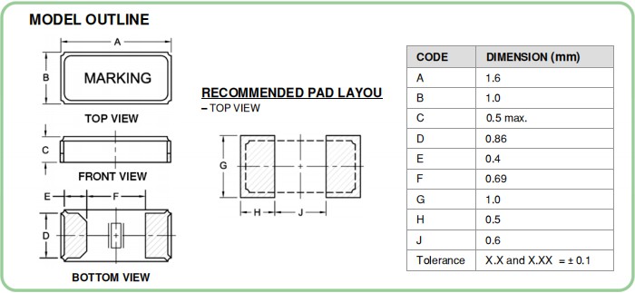 激勵功率 | DL | 1.0μW Max. | 推薦:100μW ~ 300μW |