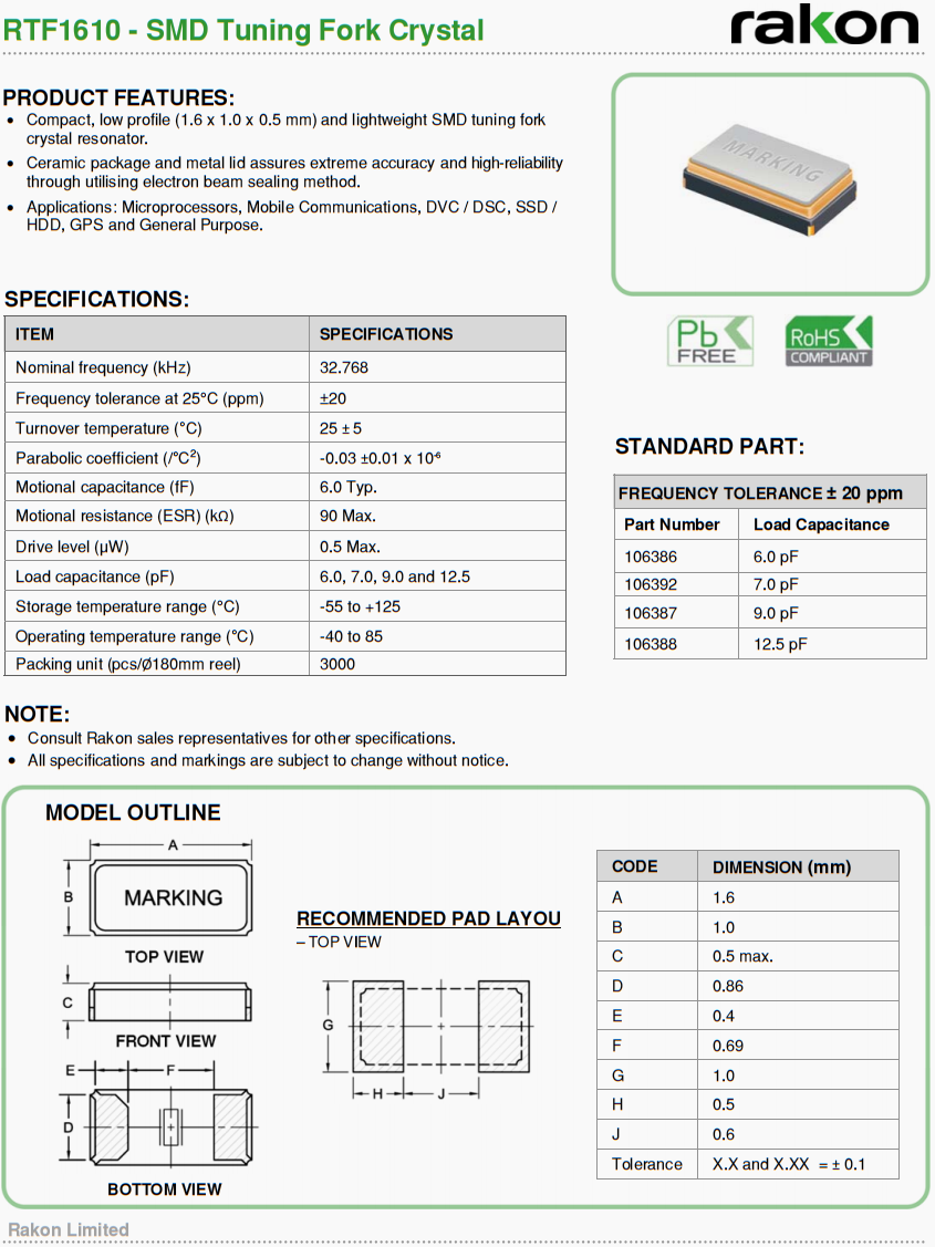 Rakon晶振 | 單位 | RTF1610晶振 | 石英晶振基本條件 |