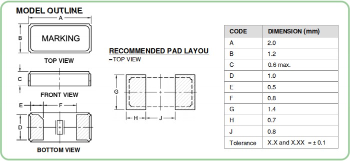 激勵功率 | DL | 1.0μW Max. | 推薦:100μW ~ 300μW |