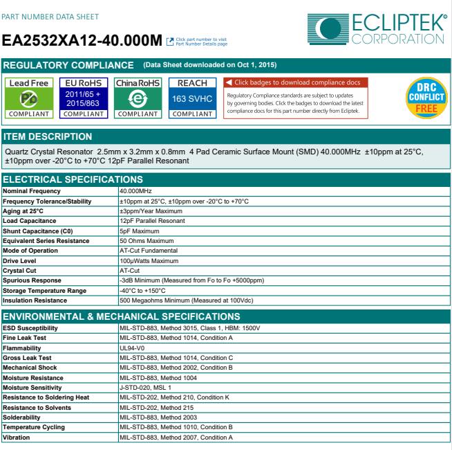 熱影響,ECLIPTEK日蝕晶振,EA2532XA12-40.000M晶振,無源晶體諧振器.