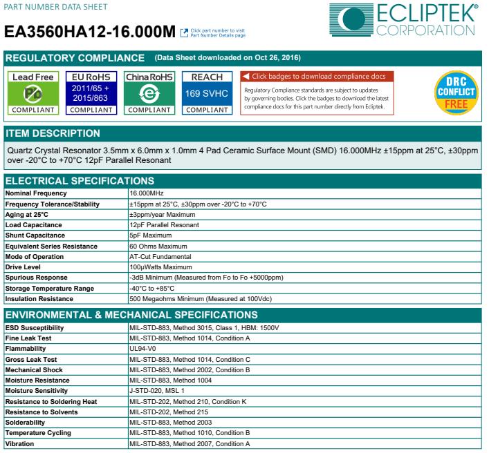 ECLIPTEK晶振將確保其振蕩器和石英晶體諧振器產(chǎn)品及相關(guān)設(shè)施滿足甚至超出國家的以及地方環(huán)保機(jī)構(gòu)的相關(guān)法規(guī)規(guī)定及其他要求,同時該公司盡可能的參與并協(xié)助政府機(jī)關(guān)和其他官方組織從事的環(huán)保活動. 在地方對各項設(shè)施的管理責(zé)任中,確保滿足方針的目標(biāo)指標(biāo),同時在各種經(jīng)營與生產(chǎn)活動中完全遵守并符合現(xiàn)行所有標(biāo)準(zhǔn)規(guī)范的要求.ECLIPTEK晶振,EA3560HA12-16.000M晶振,6035mm貼片晶振 .