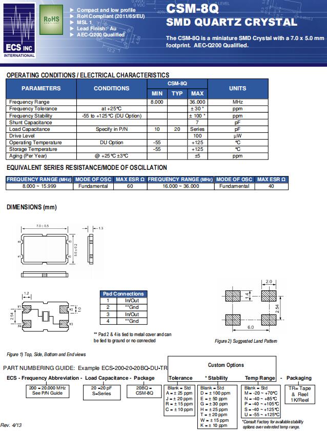 ECS-130-18-20BQ-DS | CSM-8Q | 13MHz | ±30ppm | 18pF | -40°C ~ 125°C |