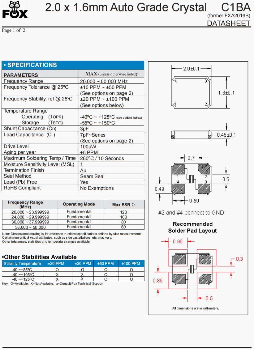 FC4SDCBMM16.0-T1 | Fox晶振 | HC49SDLF | 16 MHz | ±50ppm | ±30ppm |