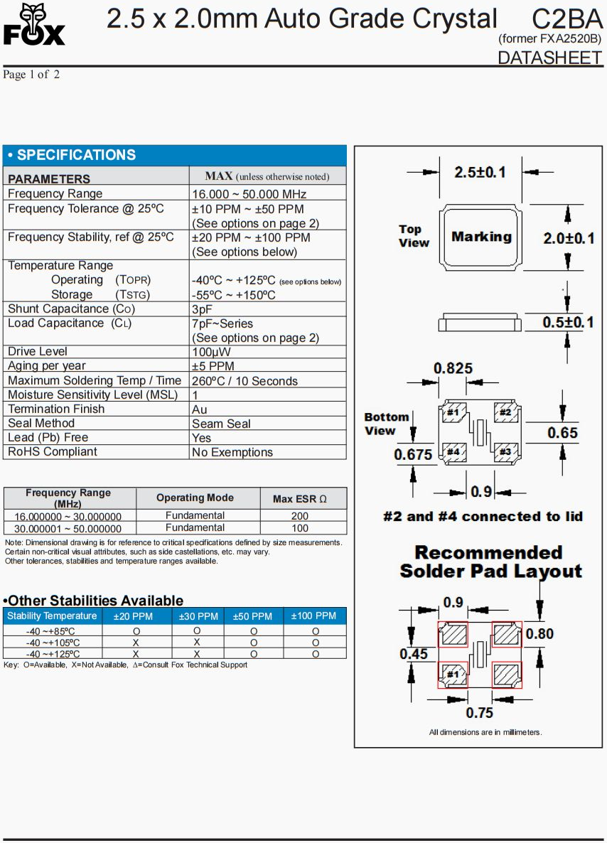 FC2BSBBMM16.0-T3 | Fox晶振 | FX252B | 16 MHz | ±50ppm | ±50ppm |