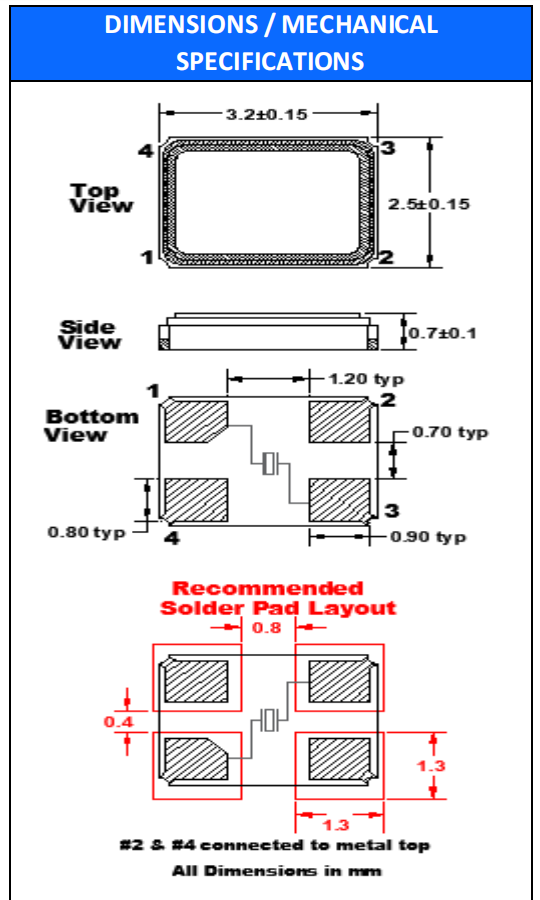 FC3BSHHEF26.0-T3,FOX晶振廠家,3225mm無源晶振,無線應用晶振,尺寸圖