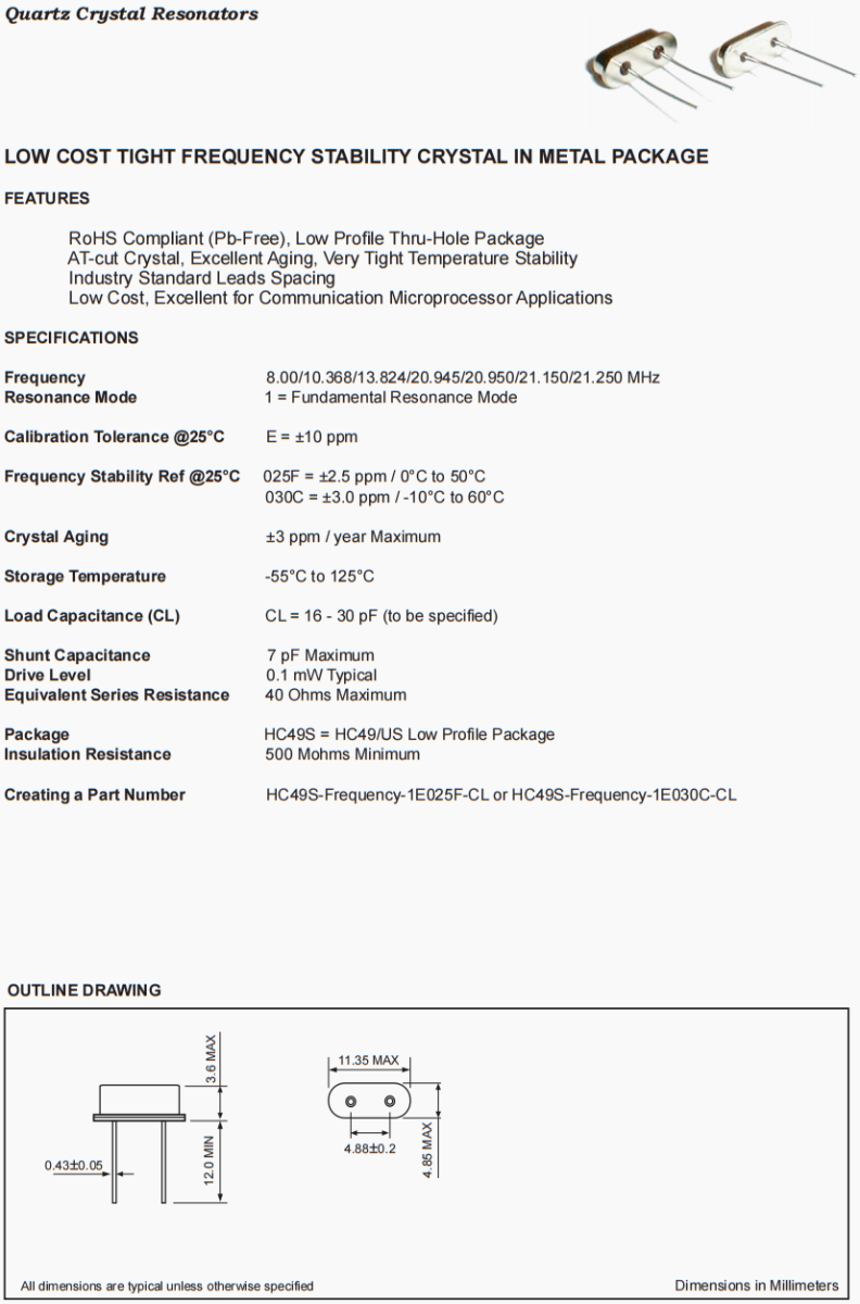 包裝 | HC49S = HC49/US Low Profile Package |