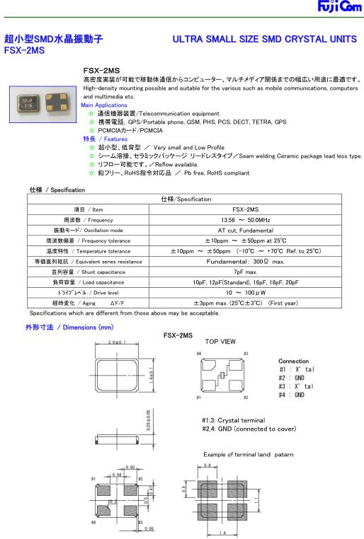 fujicom富士通晶振,FSX-2M無源晶振,攜帶電話晶振,小型貼片石英晶振,外觀尺寸具有薄型表面貼片型石英晶體振蕩器,特別適用于有小型化要求的市場領(lǐng)域,比如智能手機,無線藍牙,平板電腦等電子數(shù)碼產(chǎn)品.晶振本身超小型,薄型,重量輕,晶體具有優(yōu)良的耐環(huán)境特性,如耐熱性,耐沖擊性,在辦公自動化,家電相關(guān)電器領(lǐng)域及Bluetooth,WirelessLAN等短距離無線通信領(lǐng)域可發(fā)揮優(yōu)良的電氣特性,滿足無鉛焊接的回流溫度曲線要求.