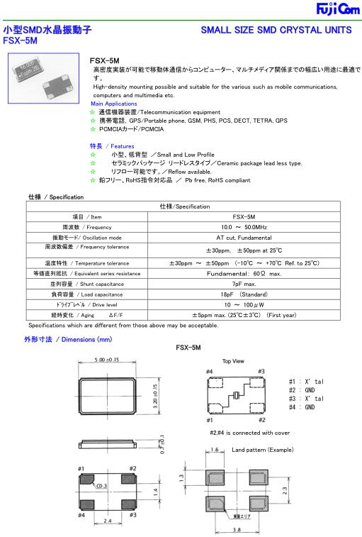 日本進口富士通晶振集團實施創新戰略,提高自主創新能力,確保公司可持續發展.實施節約戰略,提高建設節約環保型企業能力,確保實現節能環保規劃目標.日本富士晶振,FSX-5M高質量晶振,5032mm四腳貼片晶振.