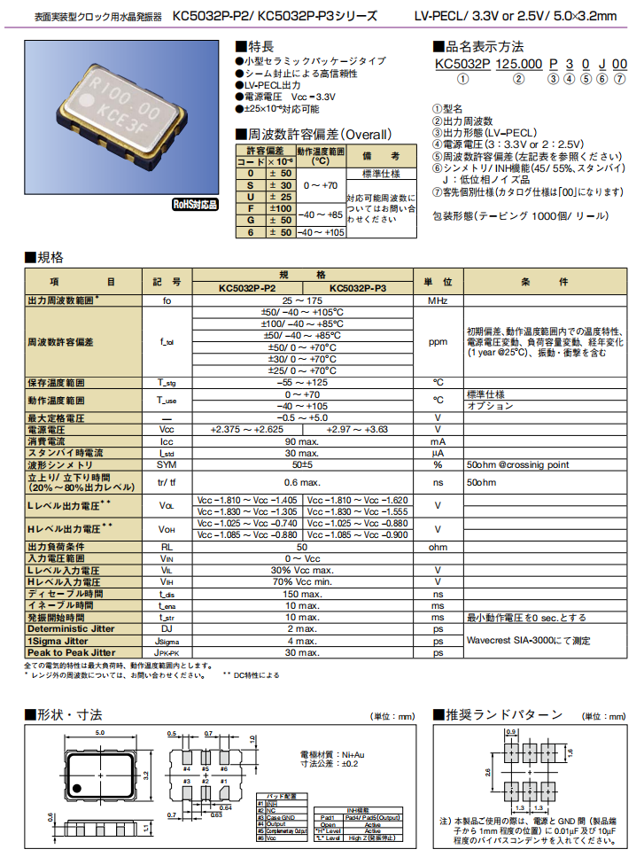 KC5032A125.000C10E00 | AVX Corp/Kyocera Corp | KC5032A-C1, Kyocera | 125MHz | 1.6 V ~ 3.63 V | -10°C ~ 70°C |