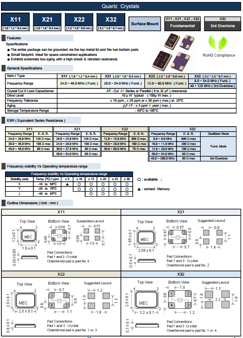 MERCURY晶振 | 單位 | X21晶振 | 石英晶振基本條件 |