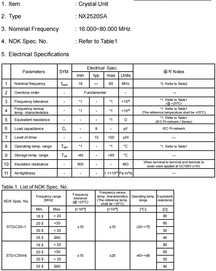 NX2520SA-16.000000MHZ-W1 | NDK晶振 | NX2520SA | 16MHz | ±20ppm | 4-SMD, No Lead |