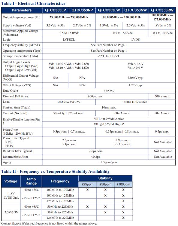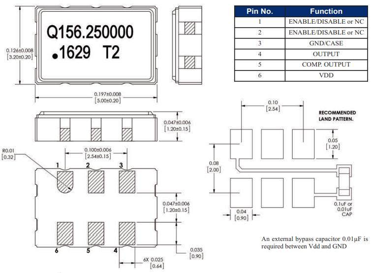 額定頻率 | 156.25MHz | 請聯系我們以便獲取其它可用頻率的相關信息 |