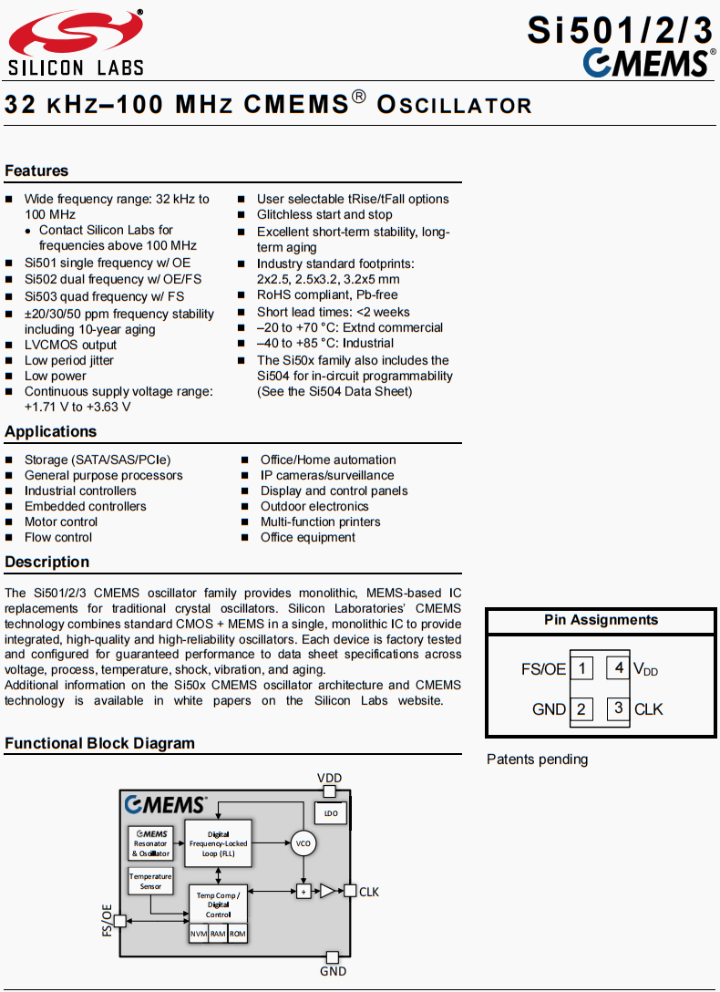 501HCAM032768BAG | Silicon Labs | 32.768 kHz | LVCMOS | 1.7V ~ 3.6V | ±20ppm | -40°C ~ 85°C |