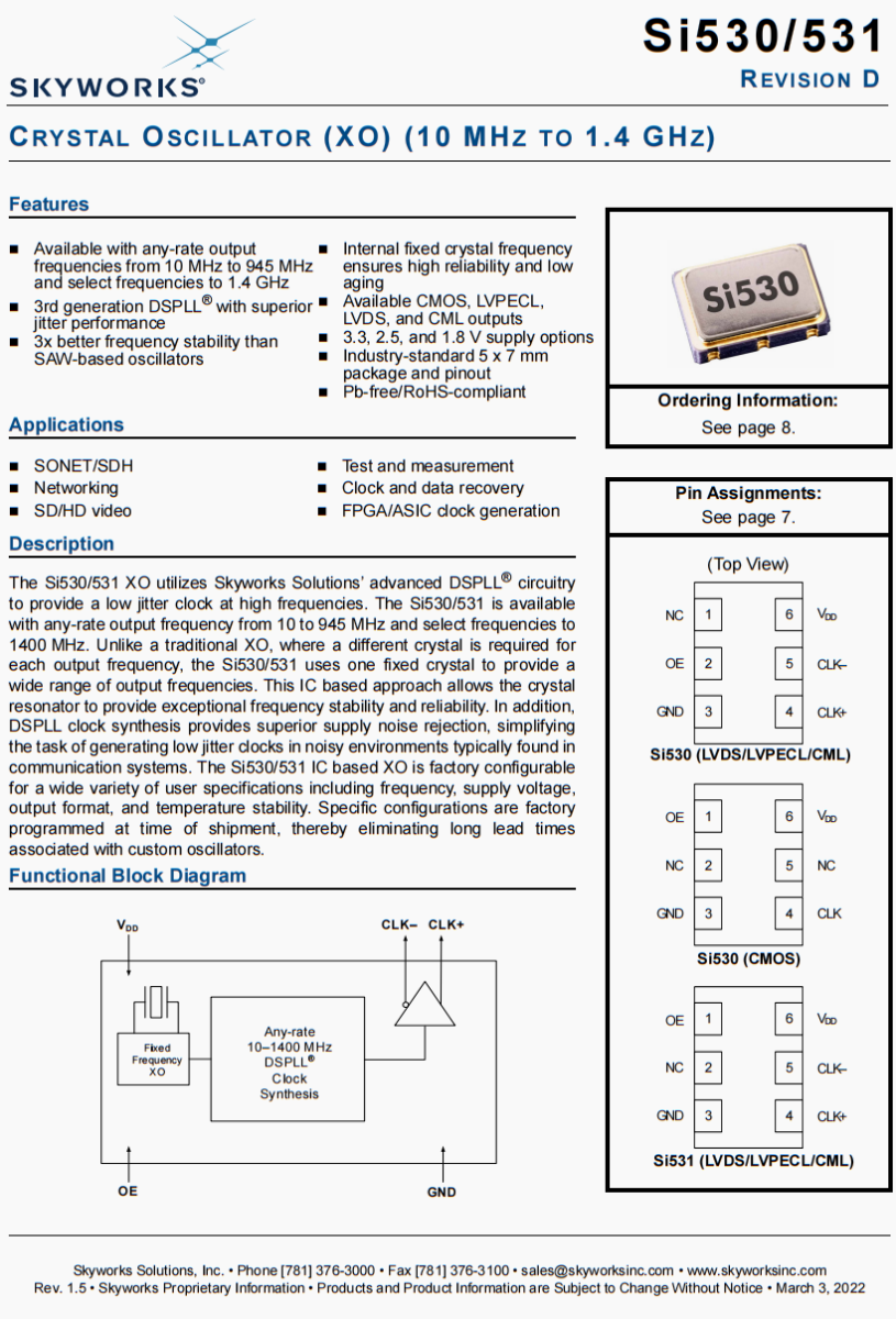 536BB125M000DG | Skyworks晶振 | Si536 | XO | 125 MHz | LVDS | 3.3V | ±20ppm |