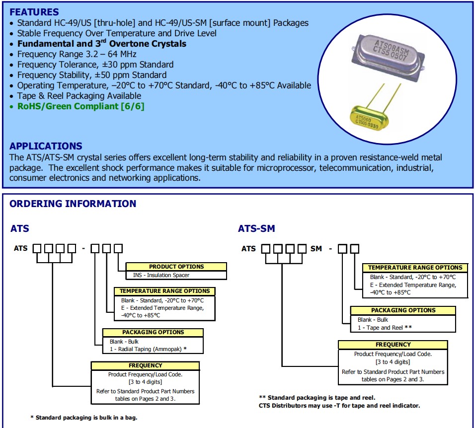 ATS050ASM-1 | CTS晶振 | ATS-SM | MHz Crystal | 5MHz |