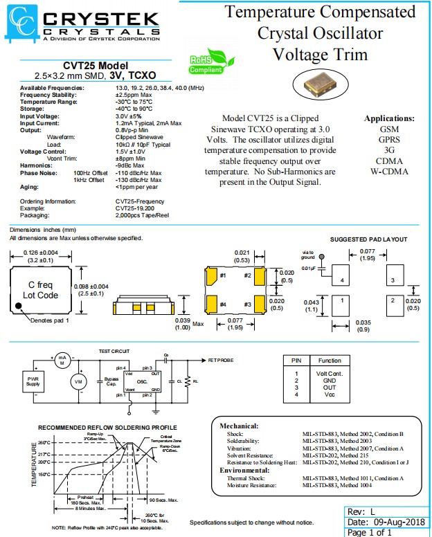 CVT25-26.000 | Crystek Crystal | CVT25 | TCXO | 26MHz |