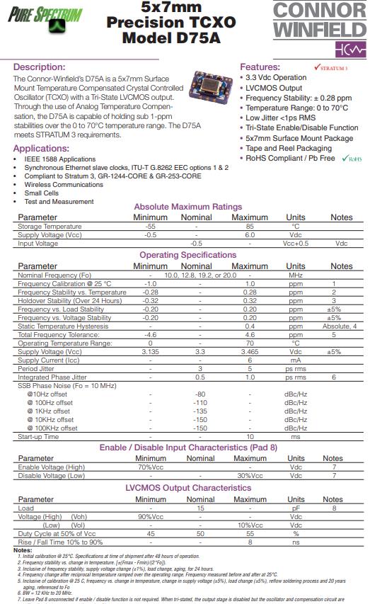 D75A-019.2M | Connor-Winfield溫補晶振 | D75A | 19.2MHz | 0°C ~ 70°C |