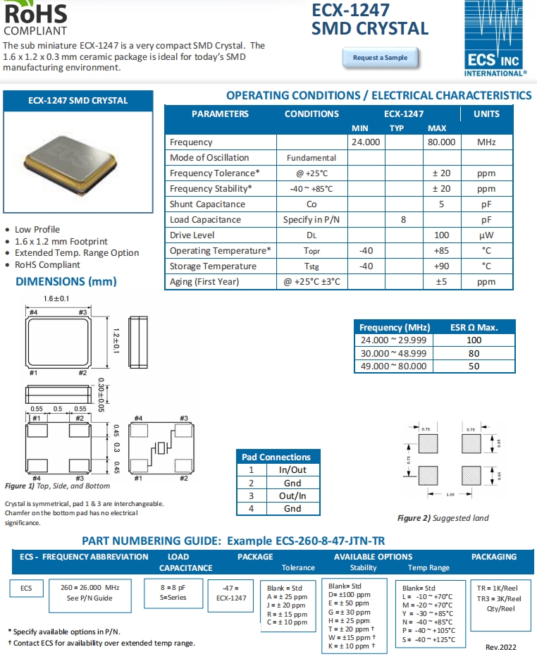ECS-480-8-47-JTN-TR | ECS晶振 | ECX-1247 | 48MHz | -40°C ~ 85°C |