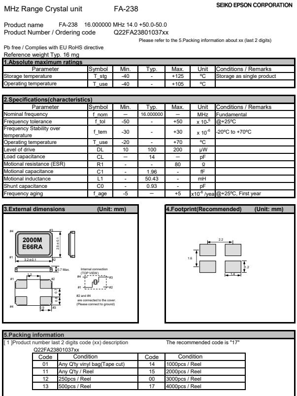 Q22FA2380098000 | 3.2 x 2.5 x 0.7mm | FA-238 | 00.000000 MHz | 22 pF | +/-50 ppm | +/-30 ppm | -20 to +70 °C |