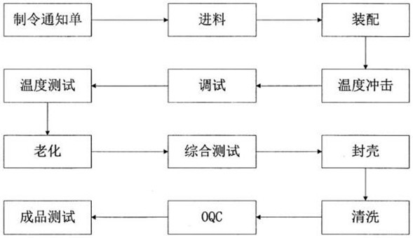 關(guān)于生產(chǎn)石英晶振生產(chǎn)流程比較復(fù)雜,包含多次的測(cè)試過(guò)程。生產(chǎn)部門(mén)接到制令通知單后開(kāi)始組織生產(chǎn),生產(chǎn)人員到資材課領(lǐng)取物料,由操作員對(duì)元器件和晶體進(jìn)行焊接,焊接完成后對(duì)晶振進(jìn)行調(diào)試,調(diào)試完成后依次進(jìn)行溫度測(cè)試、老化測(cè)試, 測(cè)試完成后由封口站人員對(duì)石英晶振進(jìn)行封殼,經(jīng)過(guò)清洗、檢驗(yàn)后最終成品制成。石英晶振生產(chǎn)流程圖如圖